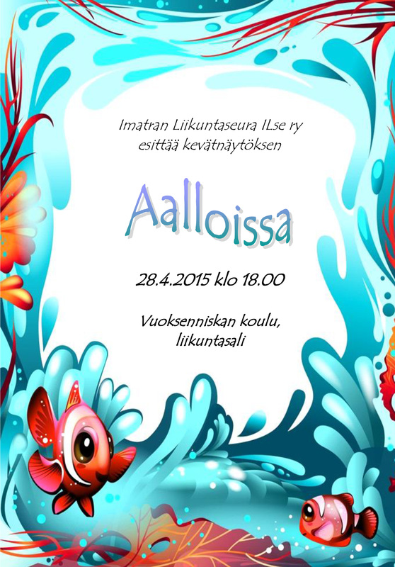 ILsen perinteinen kevätnäytös järjestetään tiistaina 28.4.2015 klo 18.00 alkaen Vuoksenniskan koulun liikuntasalissa. Ovet avataan yleisölle klo 17.50. Tänä vuonna näytös järjestetään iloisella ja vauhdikkalla aalloissa-teemalla. Illan ohjelmassa mm. erilaisia lasten ja nuorten ryhmiemme musiikillisia tanssi- ja voimisteluesityksiä. Pääsymaksu on 5 €/hlö, sisältäen ohjelman. Alle 16-vuotiaat ilmaiseksi. Ainoastaan käteismaksu. Lippuja voi ostaa myös ennakkoon toimistolta 22.4.2015 alkaen sen aukioloaikoina. Toimiston vaihtuvat aukioloajat löytyvät kotisivujen etusivulta. Lämpimästi tervetuloa nauttimaan aaltojen pyörteisiin liittyvistä esityksistä! |